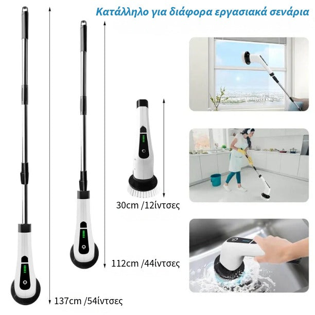MultiKatharistís Ηλεκτρική Ασύρματη Συσκευή Καθαρισμού διαθέτει τρία ρυθμιζόμενα μεγέθη, διπλές ταχύτητες και 7 ανταλλακτικές κεφαλές βουρτσών. Πείτε αντίο στο σκύψιμο και το γονάτισμα κατά τον καθαρισμό, καθώς αφαιρεί εύκολα τις επίμονες λεκέδες σε κάθε γωνία και μειώνει σημαντικά τον χρόνο εργασίας σας από 1 ώρα σε 15 λεπτά. Εξοικονομήστε χρόνο, κόπο και χρήματα στον καθαρισμό του σπιτιού σας.